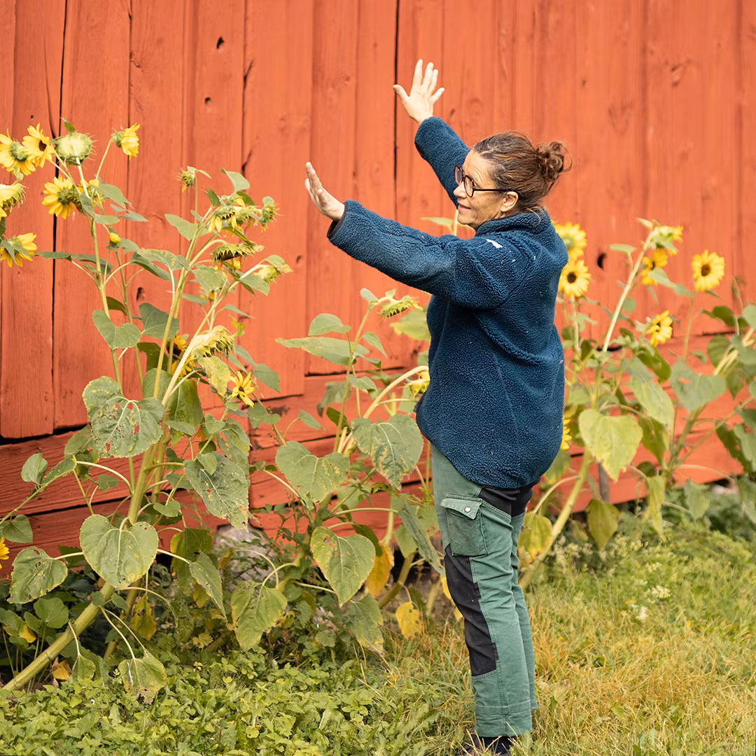 - Praktiska fickor, en större och två mindre snedställda som rymmer ex saxar eller en sekatör.
