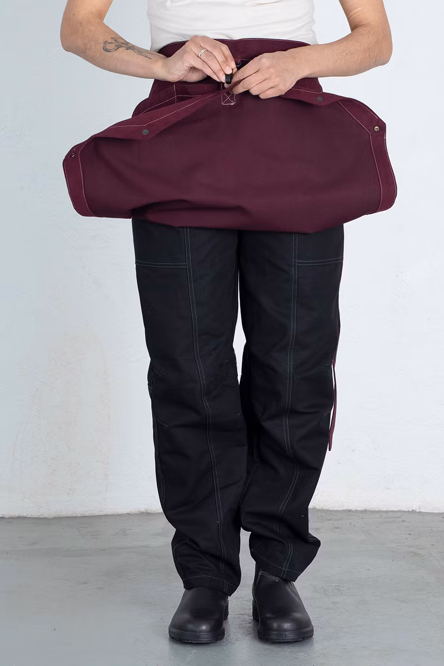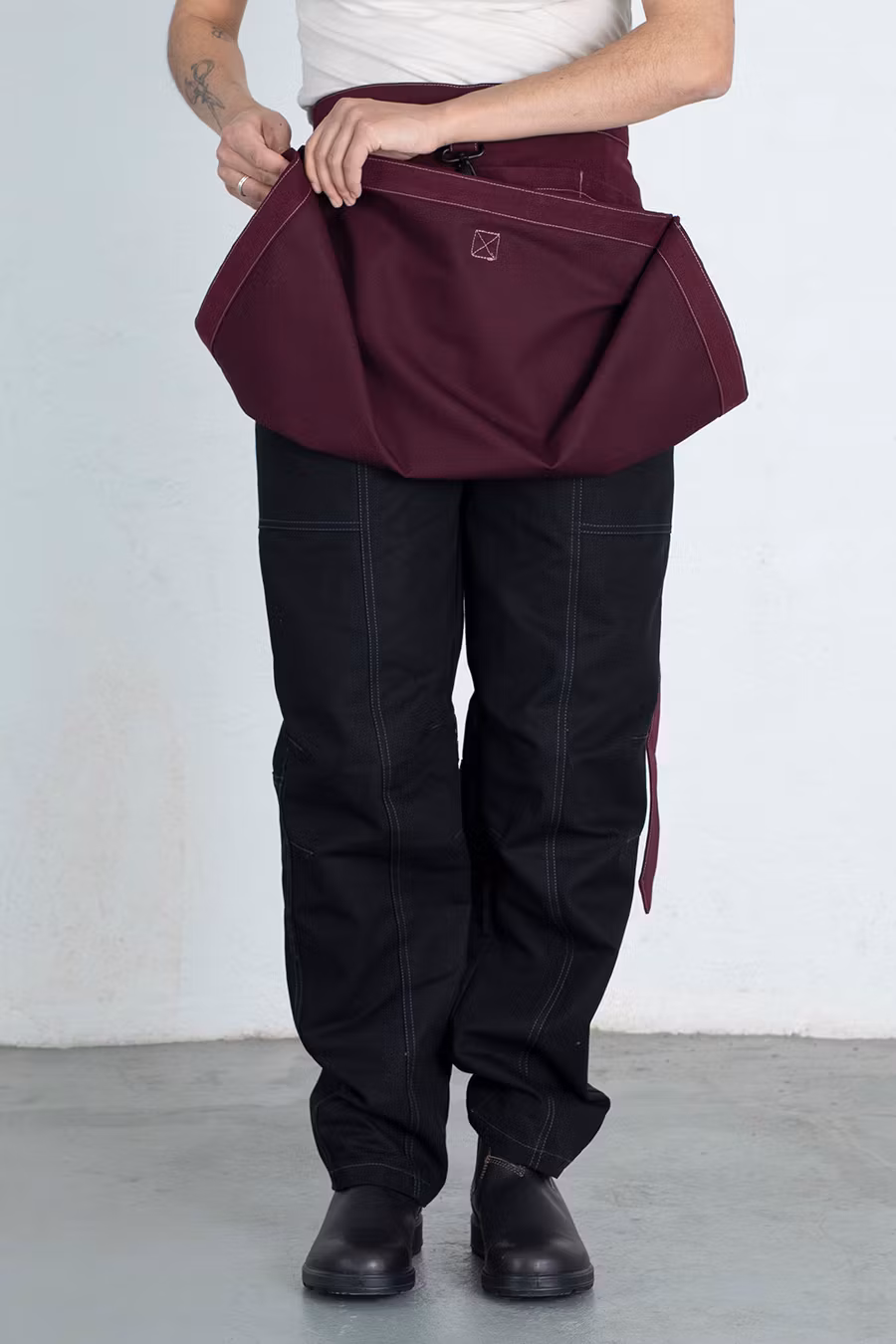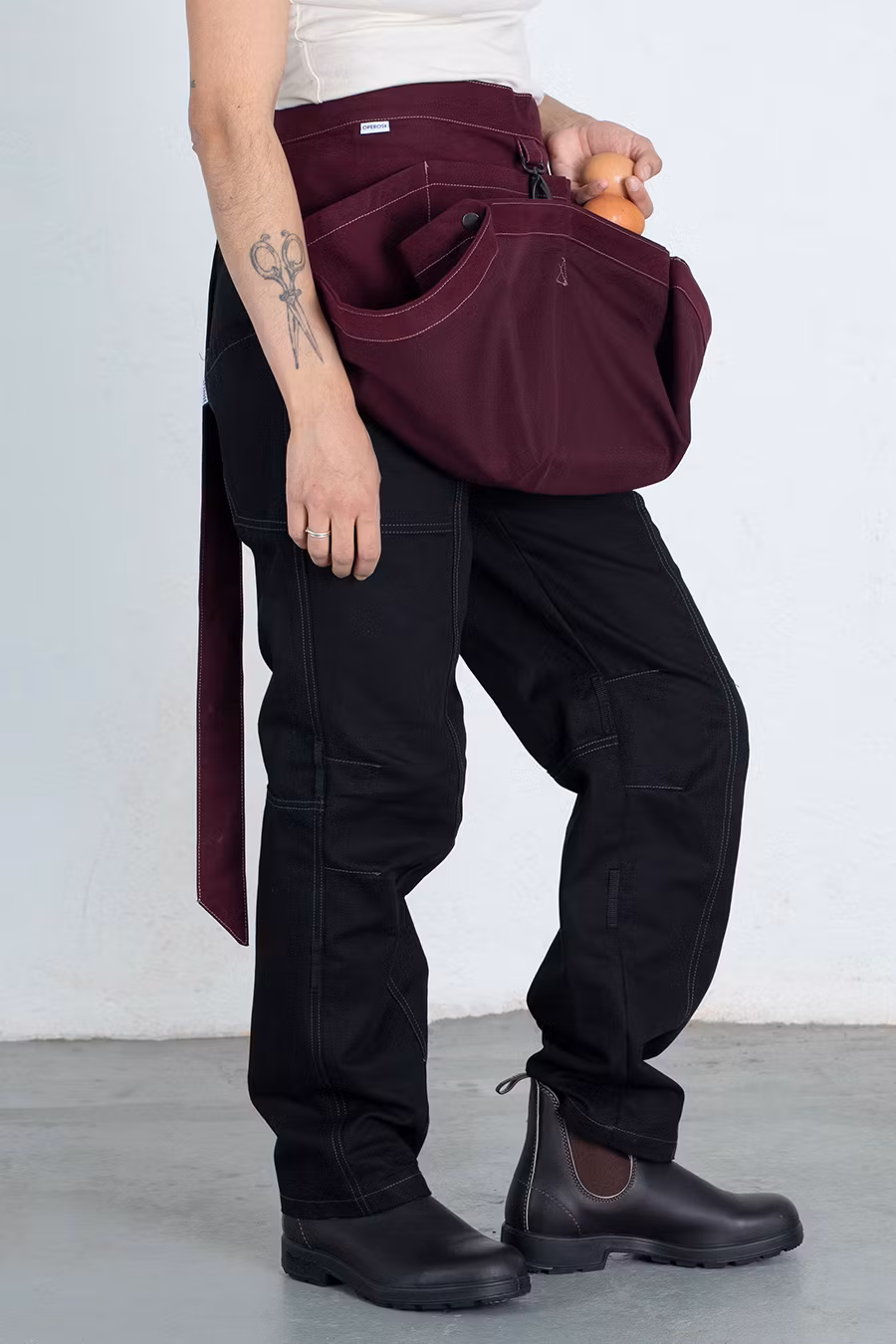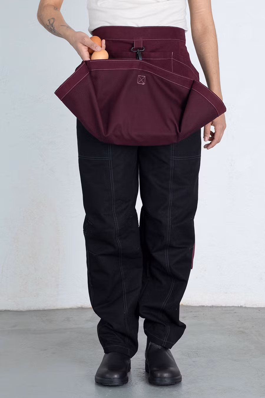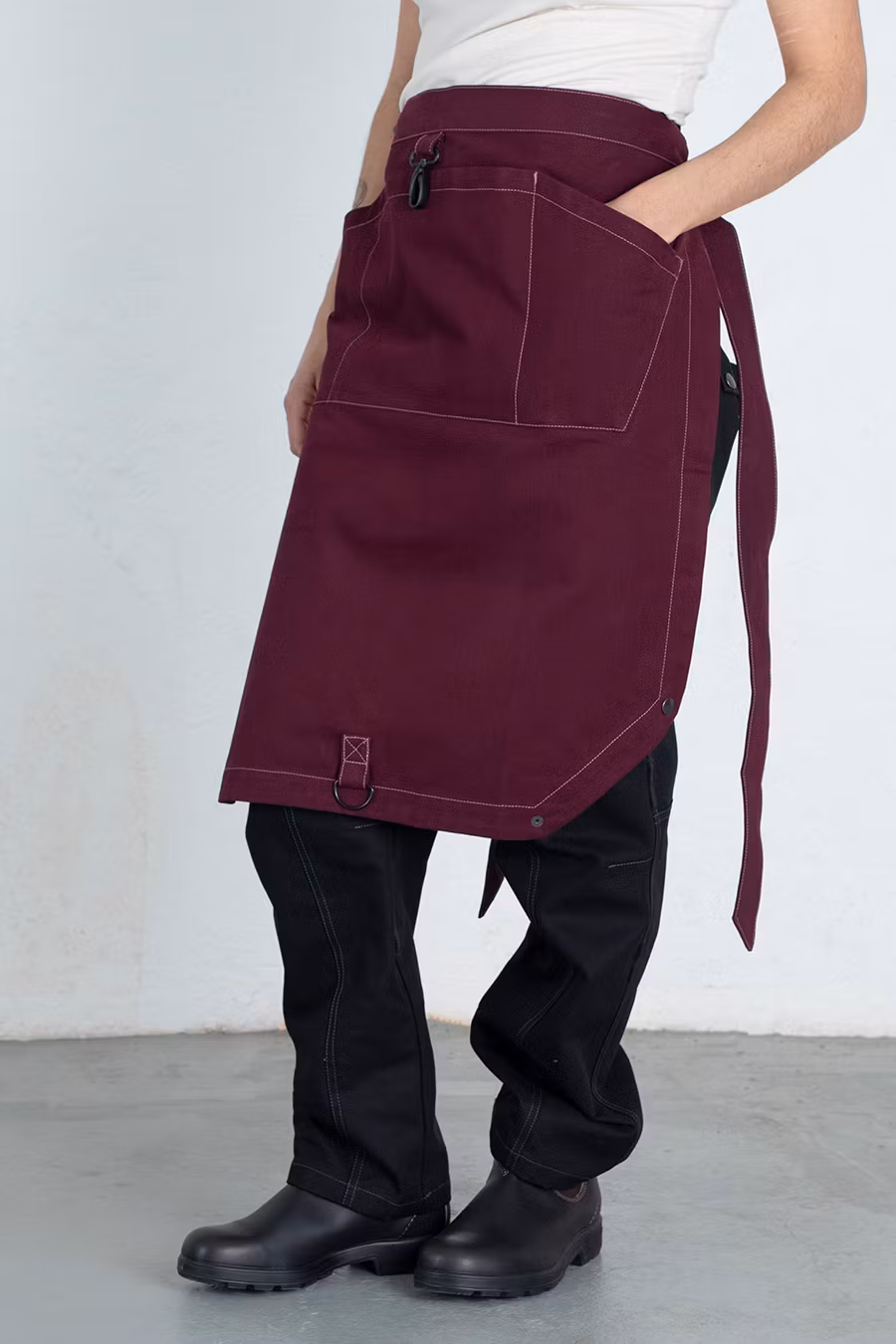 MARIA förkläde vinröd. Maria är ett multifunktionellt förkläde med smarta detaljer och i 100% bomull. Utmärkt som ett skördeförkläde.
